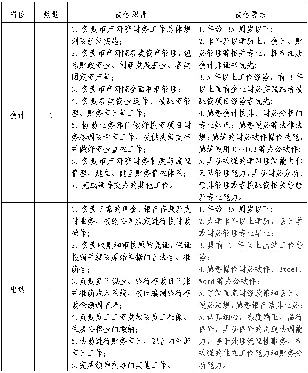 潍坊市产业技术研究院(简称“市产研院”)是由潍坊市人民政府举办的事业法人单位,于2019年9月10日揭牌成立。实行企业化管理、市场化运营,设立投资发展有限公司,搭建“产研院+公司+基金+各类创新主体+孵化园区”的框架结构。市产研院已有加盟院8家、合作单位12家,已入驻10家专业研究机构,携手中科院等8家高校院所成立研究院和技术转移中心。联合湾区金融共建“潍坊国际科技金融服务中心”,设立10亿元科技企业培育基金,联合潍坊市城投设立10亿元产业创新发展基金。现根据业务发展需要,面向社会诚聘优秀人才。